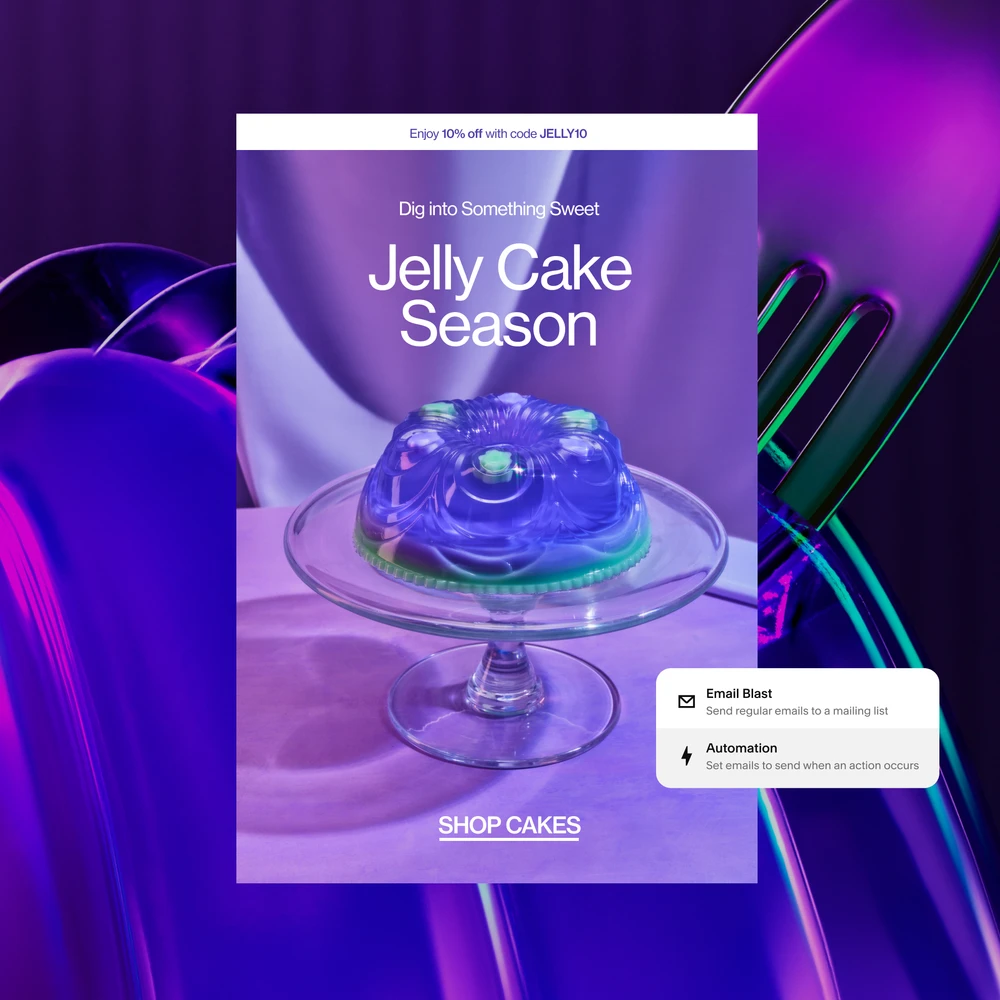 Email campaigns that pull in your site’s colors, products, and blog posts so your communications feel effortlessly on-brand.